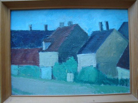 Maleri - Erik Olsen 1964- "Huse ved Sauers Plads i Aalborg"