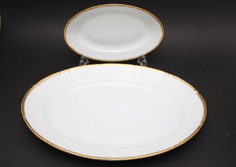 Text available in Danish: Bing & Grøndahl, Offenbach, hvidt porcelæn med knækkede kanter og guld. I. sortering.