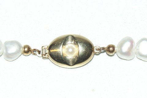 Pearl necklace with gold lock, 14 Carat