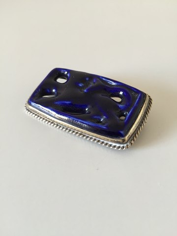 Royal Copenhagen A. Dragsted Jais Nielsen Sterling Silver and Porcelain Brooch. Measures 5x3cm (1 31/32" x 1 3/16"), weighs 17g (0,60oz)