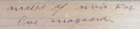 Maagaard, Valdemar (1864 - 1937) Danmark: Bondeinteriør med to standkister. Olie på lærred. Betegnet på bagsiden: Malt af min Far Ove Maagaard. På blændrammen endvidere stempel fra V. Maagaards dødsbo auktion. 27 x 34 cm.