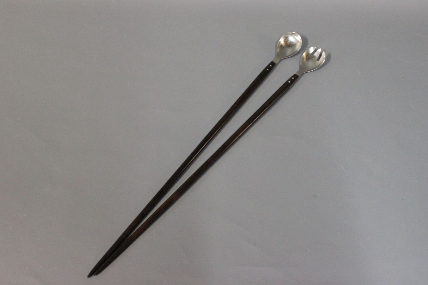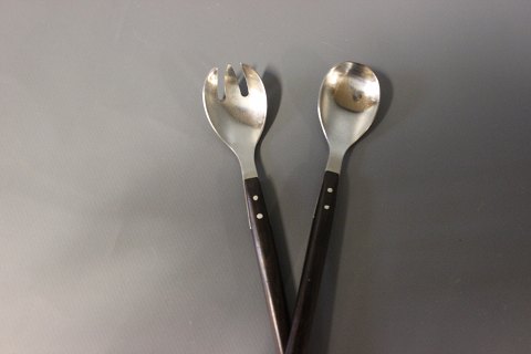Salad servers in rosewood and steel. The set is of Danish design from the 1960s.