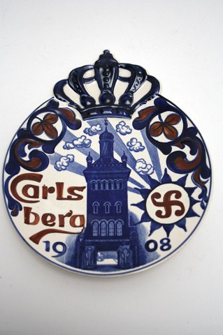 Aluminia, Carlsberg årsplatte 1908. Højde 25,5 cm. Bredde 22 cm. Pæn stand. Ubetydeligt chip bagpå. Pris: 400 kr.