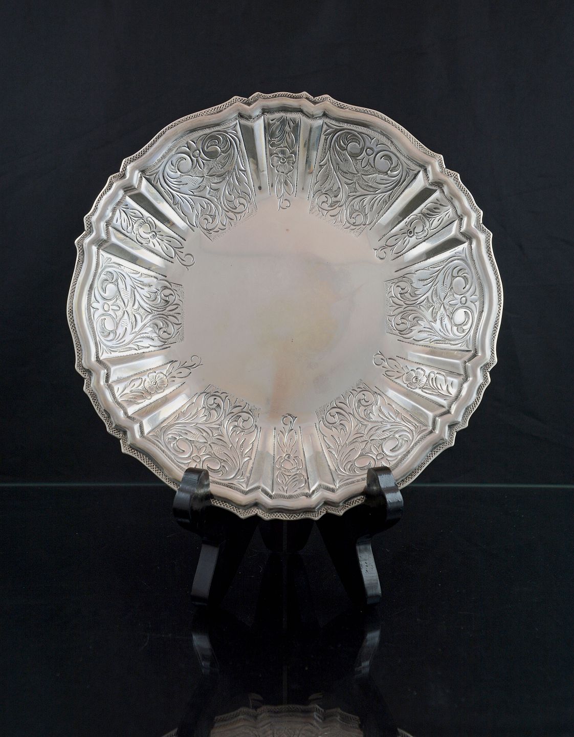 Dyb tallerken i sølv. Stemplet "830s". Intakt med brugsspor.