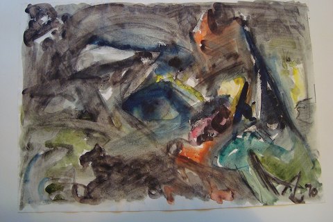 Selve akvarellen måler 35x50 - med pap passepartout - 51x65.