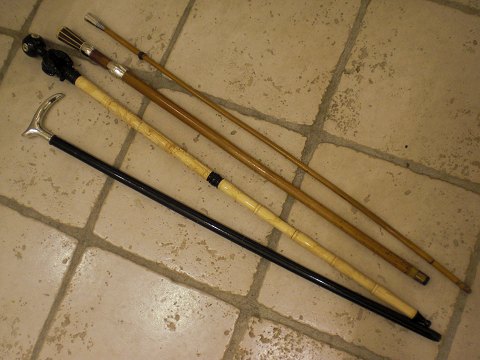 Et udvalg på 4 meget forskellige stokke. Sælges individuelt. den sort stok i forgrunden er solgt.