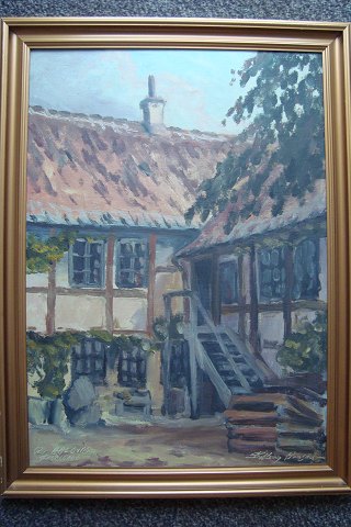 Maleri af Søren Bølling Hansen - Motiv fra det gamle Aalborg.