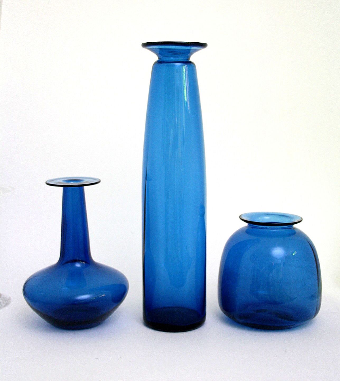 Text available in Danish: Kastrup/Holmegaard, Capri serien i blåt glas, designet af Jacob E Bang i 1961.