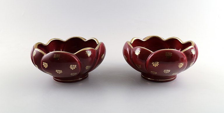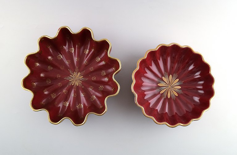Collection of 'Red Rubin' pottery with red glaze with gold, Upsala-Ekeby, Gefle. Design Arthur Percy.