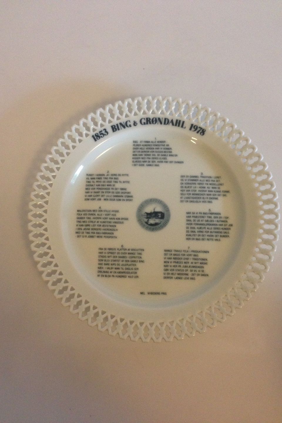 Bing & Grondahl Sung Plate from BG's 125th Jubilee.