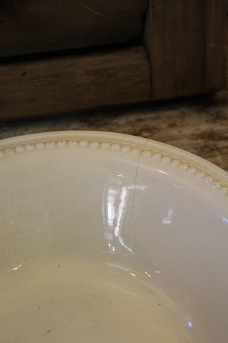 Old oval bowl of cream-colored earthenware with pearl edge.