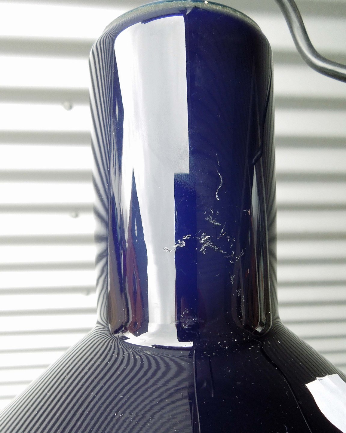 Holmegaard P&T pendel med mørkeblåt overfangsglas.