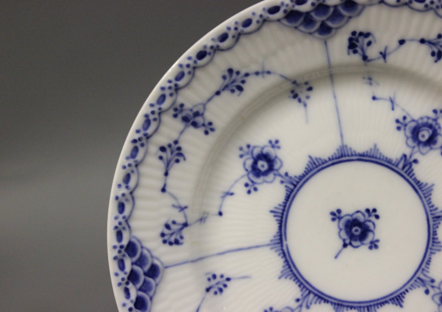 Royal Copenhagen blue fluted half lace side plate, #1/575.