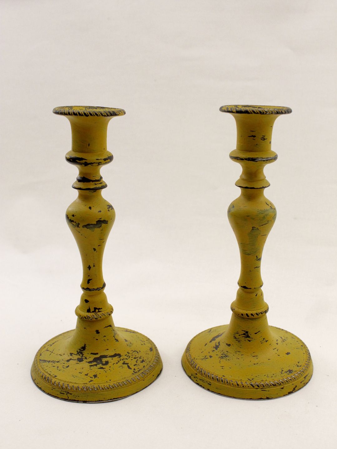 A pair of 1800-century painted pewter candlesticks H. 20 cm. No. 292024