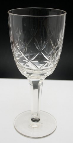 Stor pokal med krydsslibning og sleben stilk. Højde 24 cm. Diameter 10 cm. Antagelig fra starten af 1900. Der er enkle luftbobler i kumme og fod. Pris: 425 kr.