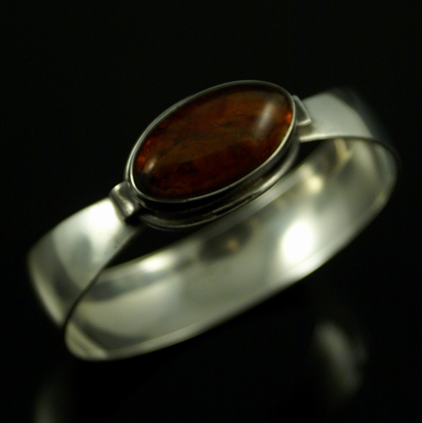 N.E. From. Danish Sterling Silver Bangle with Amber. 1960s