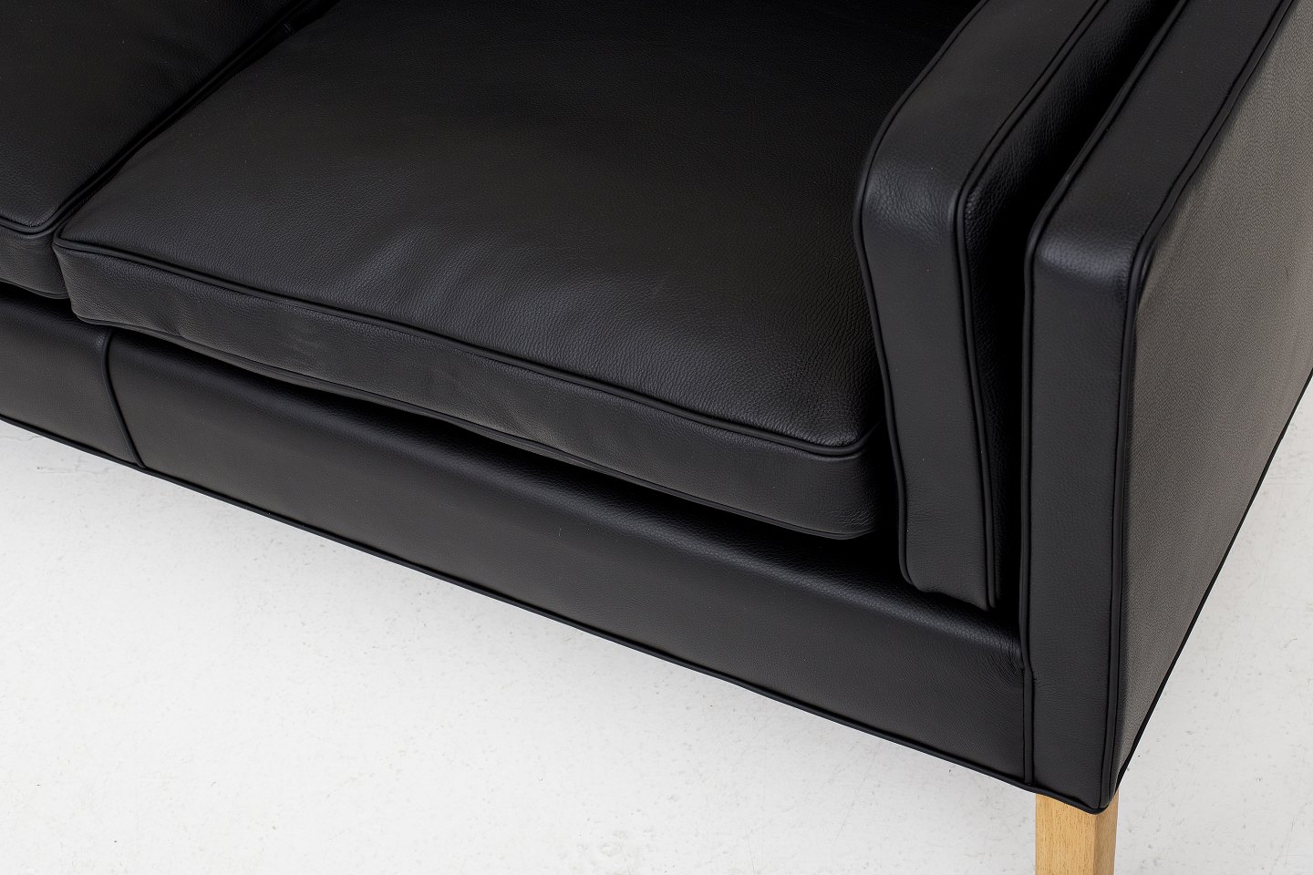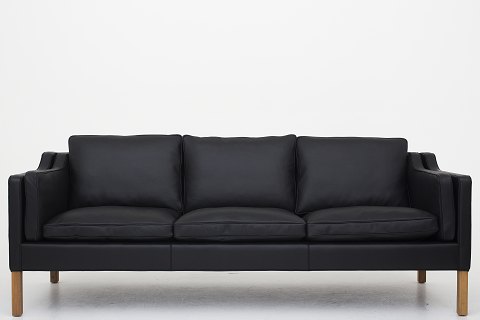 BM 2213 - Nybetrukket sofa i sort Klassik-læder og ben i eg