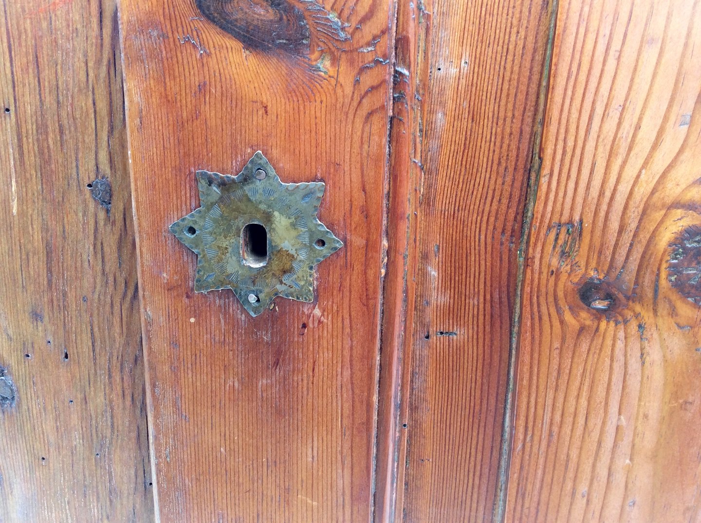 Elder almue cabinet 78.5H / 57B / 30D fine star-shaped locking stroke, * Age-related patina *