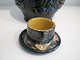 Text available in Danish: Lille lågvase i keramik med blå og brun glasur sgraffito med bløde bølger Stemplet MB 15 over H og 2 sammenslyngede initialer som jeg ikke kan læse. Møller og Bøgely 1917 - 1920 . Højde med låg: 14,5 cm - bredeste diameter: 12 cm. I fin stand med en oprindelig ujævnhed i bunden.
