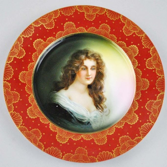 German Rosenthal plate. Red/brown/gold flower decorations and decorated with a young girl in the center. 20th. cent.