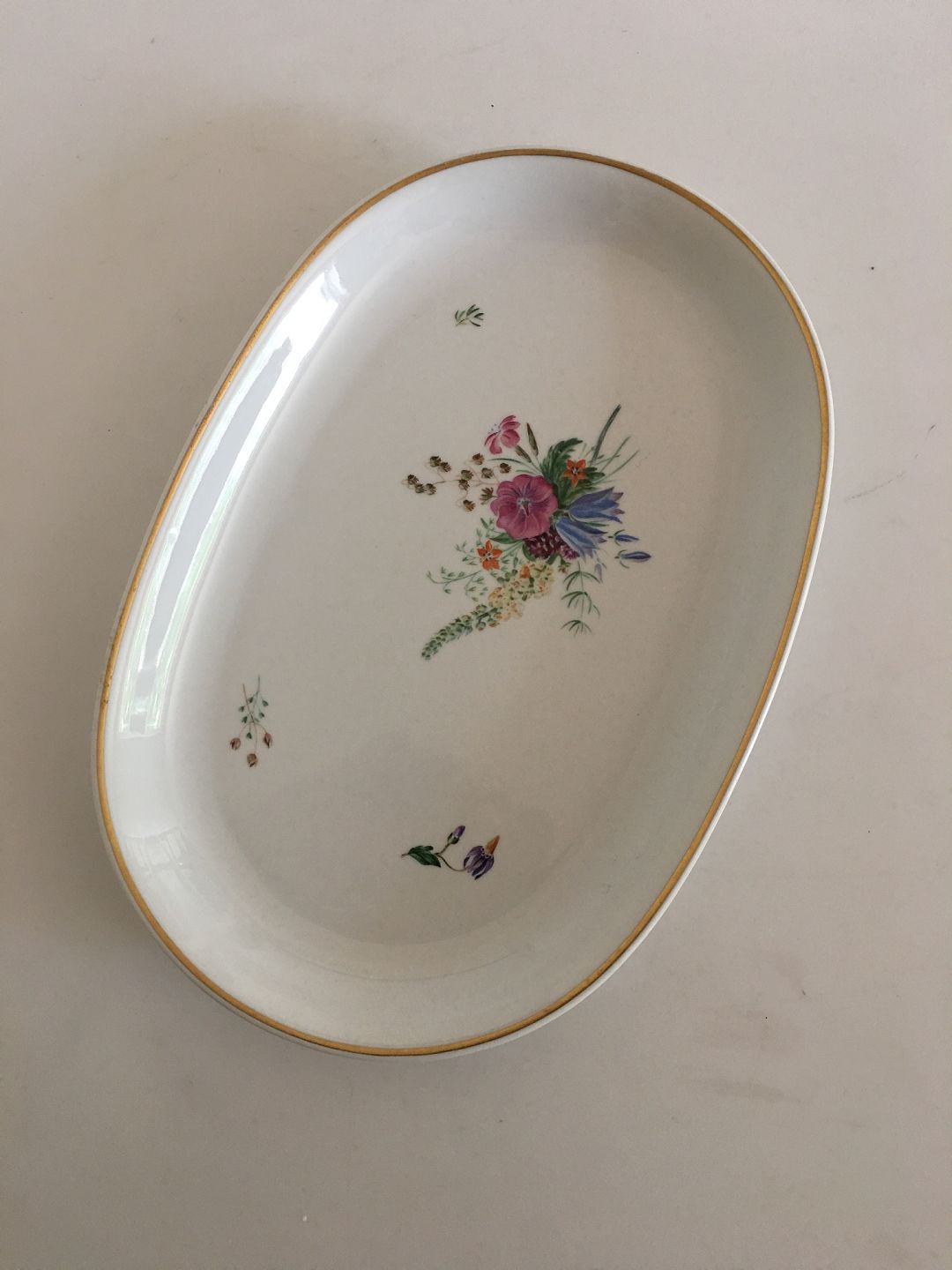 Royal Copenhagen Primavera Thorkild Olsen Oval Dish No 1515/14031. White servvie with flower decoration and gold band. The dish measures 29.5 x 19.5 cm.