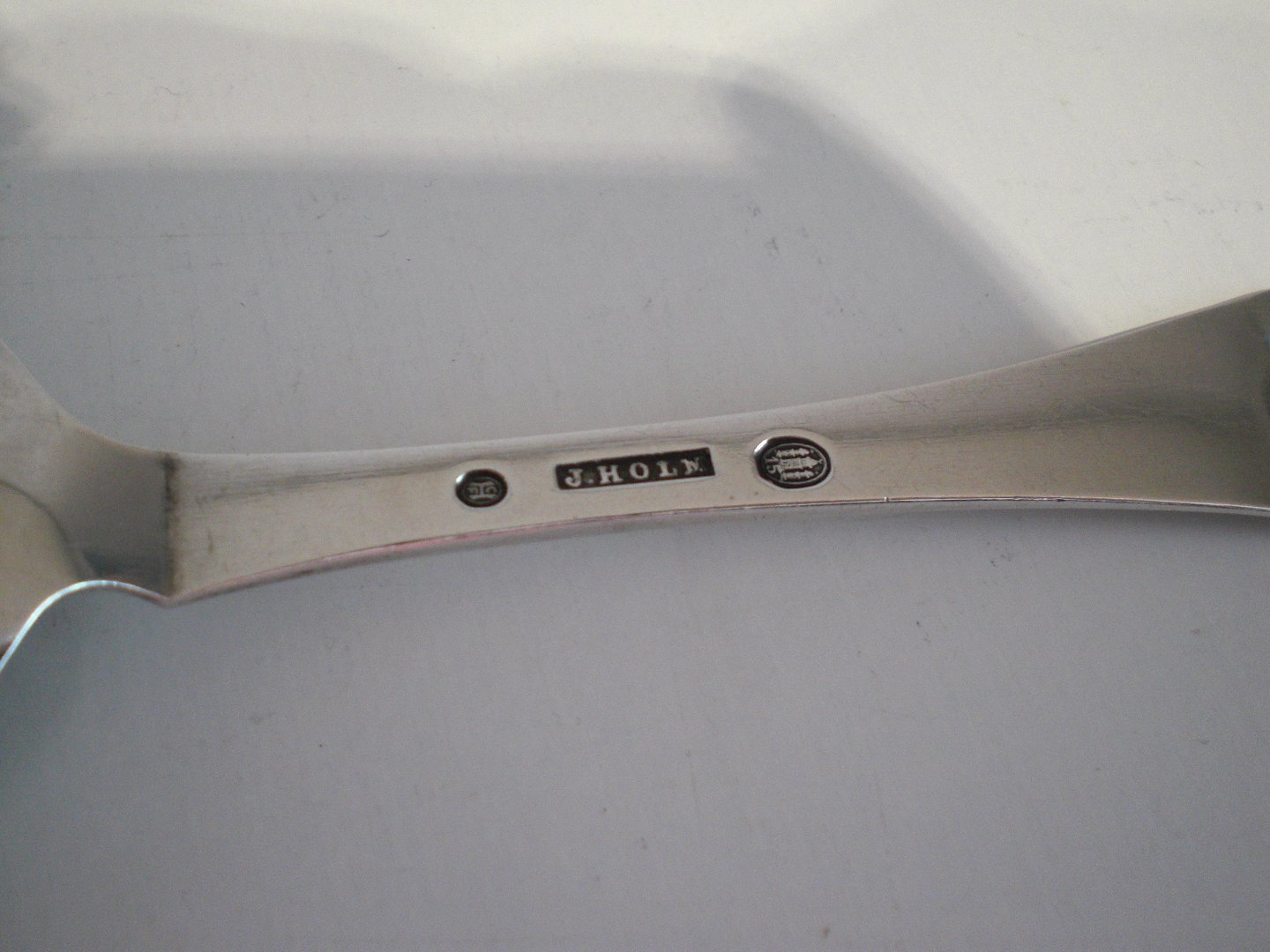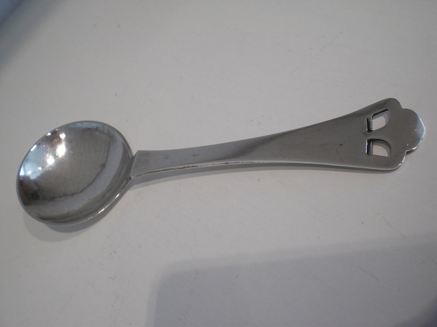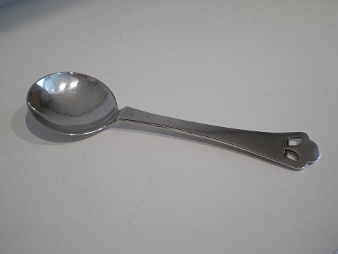 Text available in Danish: Hammerslået syltetøjsske udstandset dekoration,udført af Johan G.C.Holm (1839 - 1973) - tretårnet 1915. Længde: 12,8 cm. Breddelaffel: 4 cm. I megte fin stand