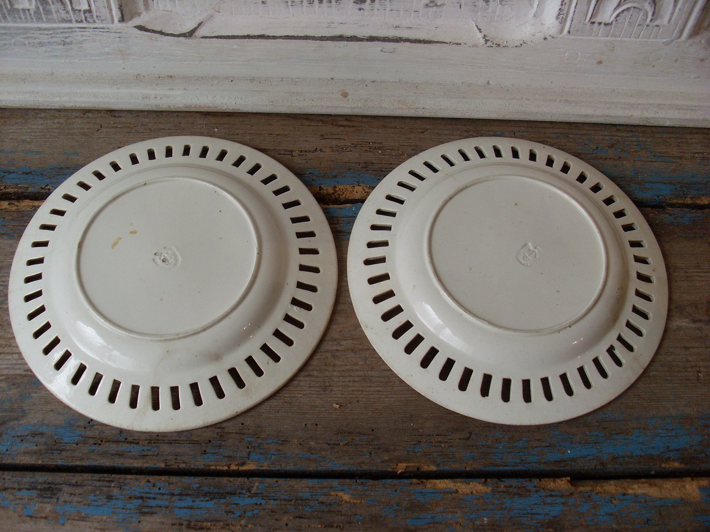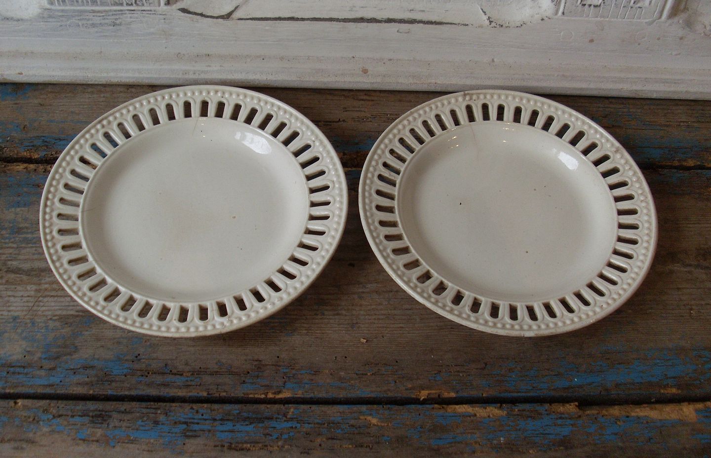 1800tals Engelsk creamware tallerkener med gennembrudt kant fra Middlesbrough Pottery