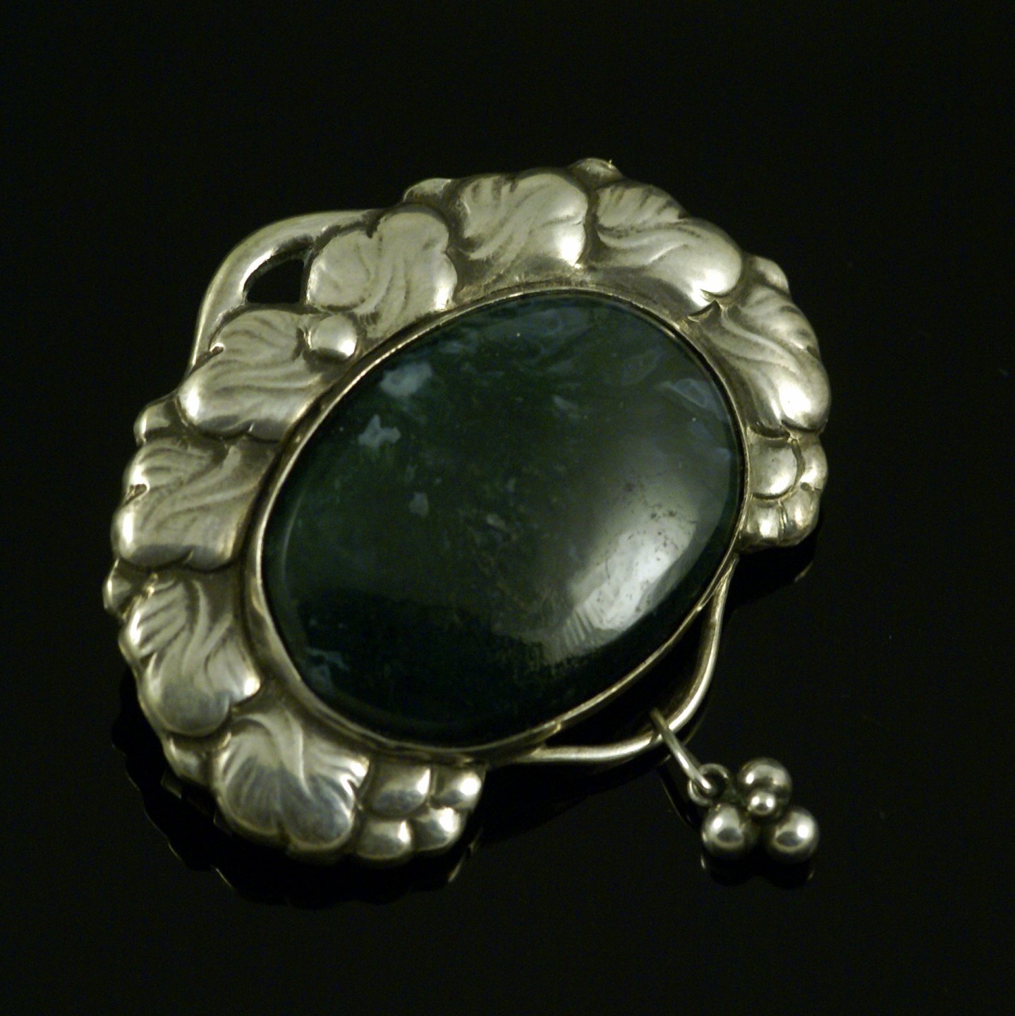 Danish Art Nouveau Silver Brooch with Moss Agate - F. Kastor Hansen.