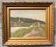 Fischer, Carl (1887 - 1962) Danmark: Landskab med personer. Olie på lærred. Signeret.: C. Fischer. 24 x 31 cm.