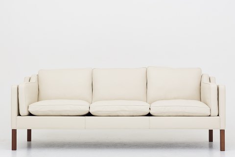 BM 2213 - Reupholstered 3-seater sofa in cream-colored Paris Cream leather with mahogany legs. We offer upholstery of the sofa in fabric or leather of your choice.