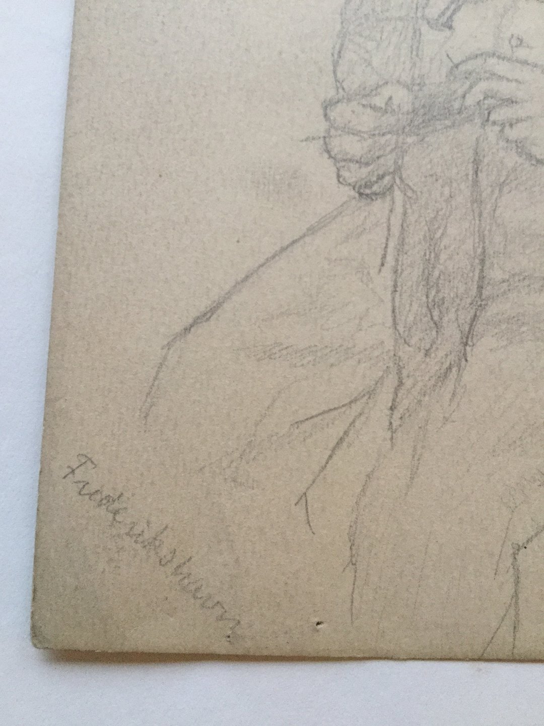 Blyantstegning af Hans Brygge - Siddende ældre mand, Frederikshavn 1903.
