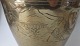 Japanese brass vase with decorations, approx. 1900. Decorations in the form of landscape with temple with wall. Unstamped. Height: 19 cm.