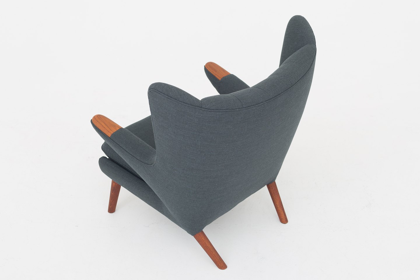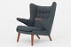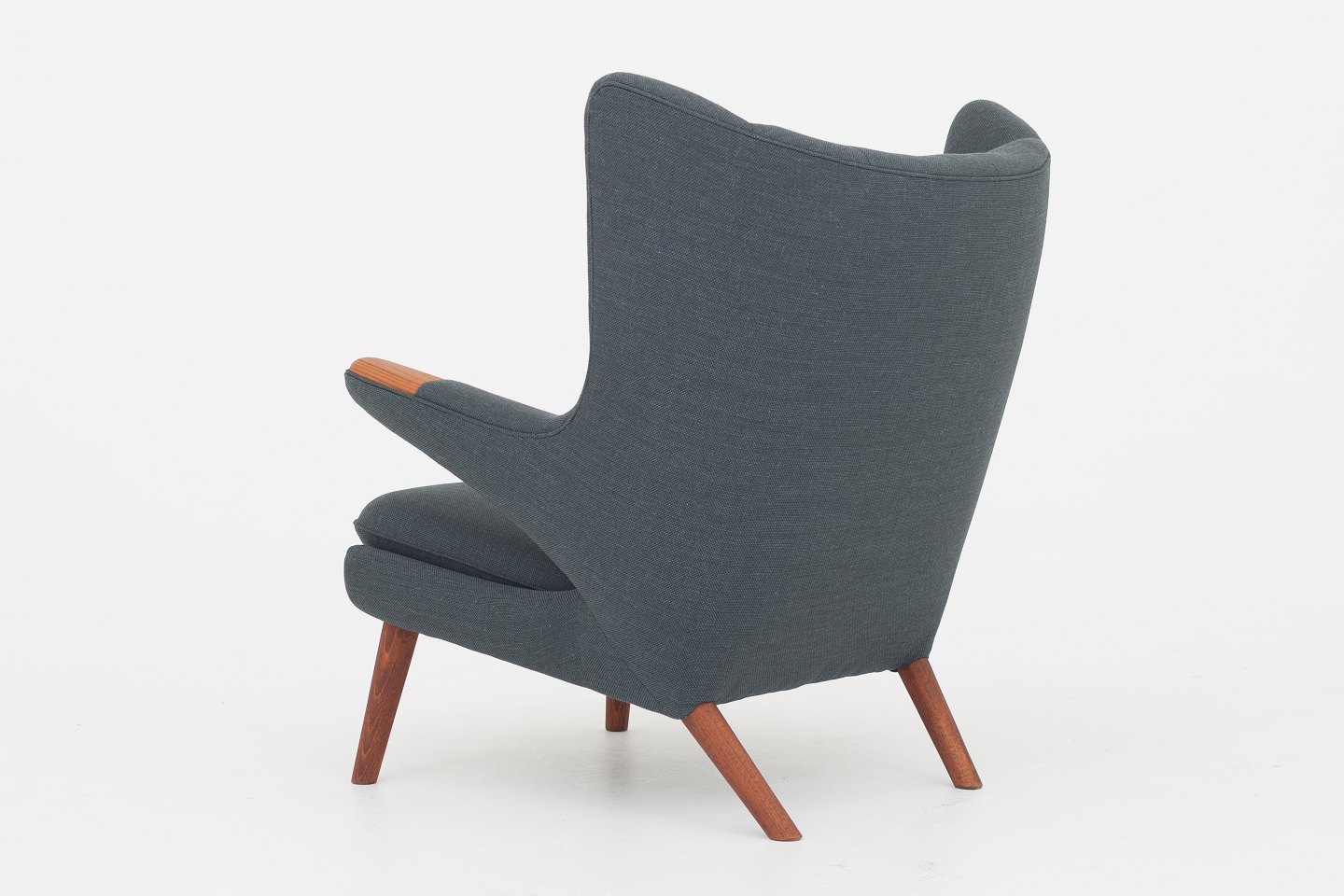 AP 19 - Reupholstered Papa Bear chair in Clara 2 wool (code: 987) w. buttons in Savanne leather (color: Coffee). Paws in teak and legs in oak.