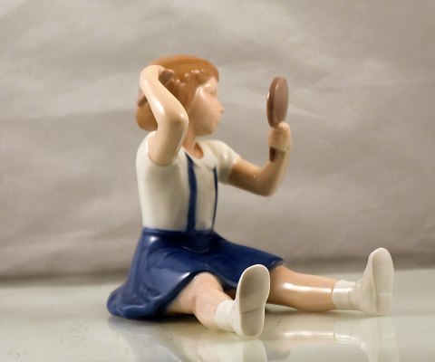 Bing & Grøndahl figur Pige med spejl "Forfængelighed" (2318). Kunstner Svend Jespersen