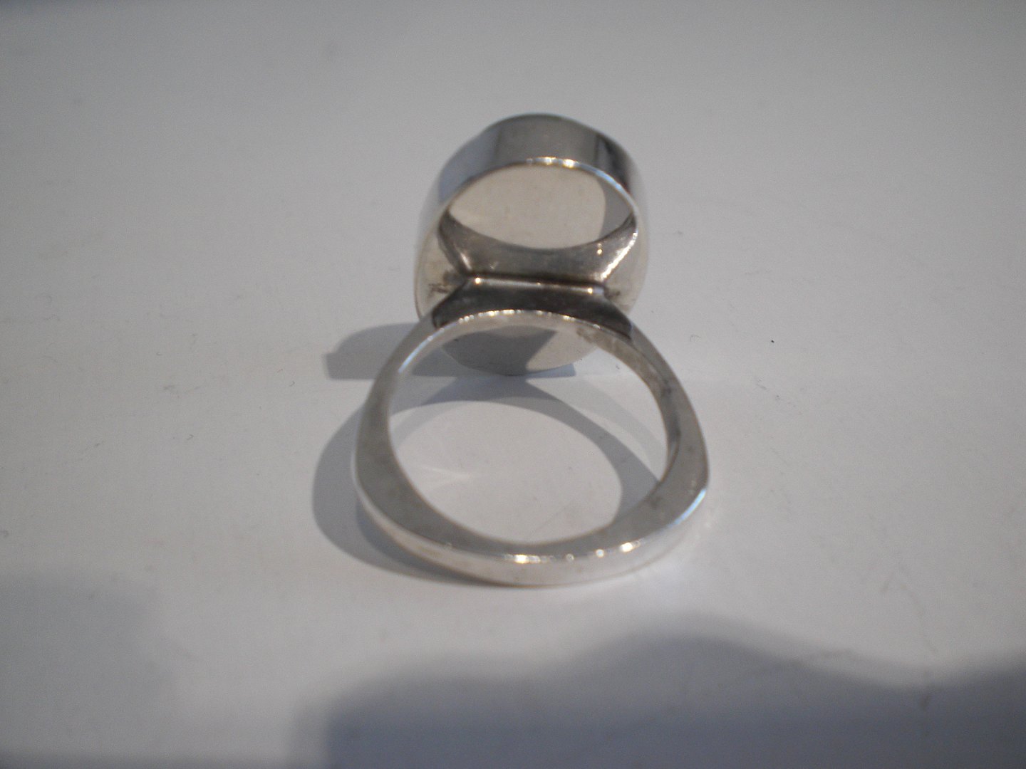 Oval sølvring (testet) med carbochonsleben Amazonit. Mål på sten: længde: 2,2 cm. - bredde: 1,4 cm. Ringstørrelse: 57. I fin stand
