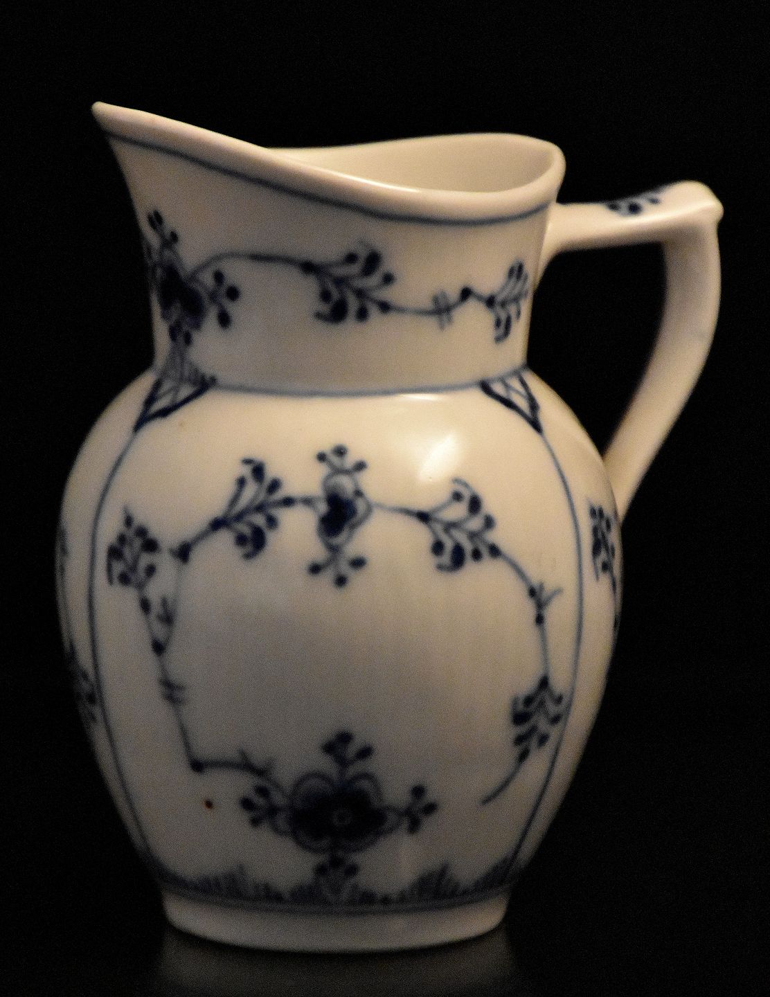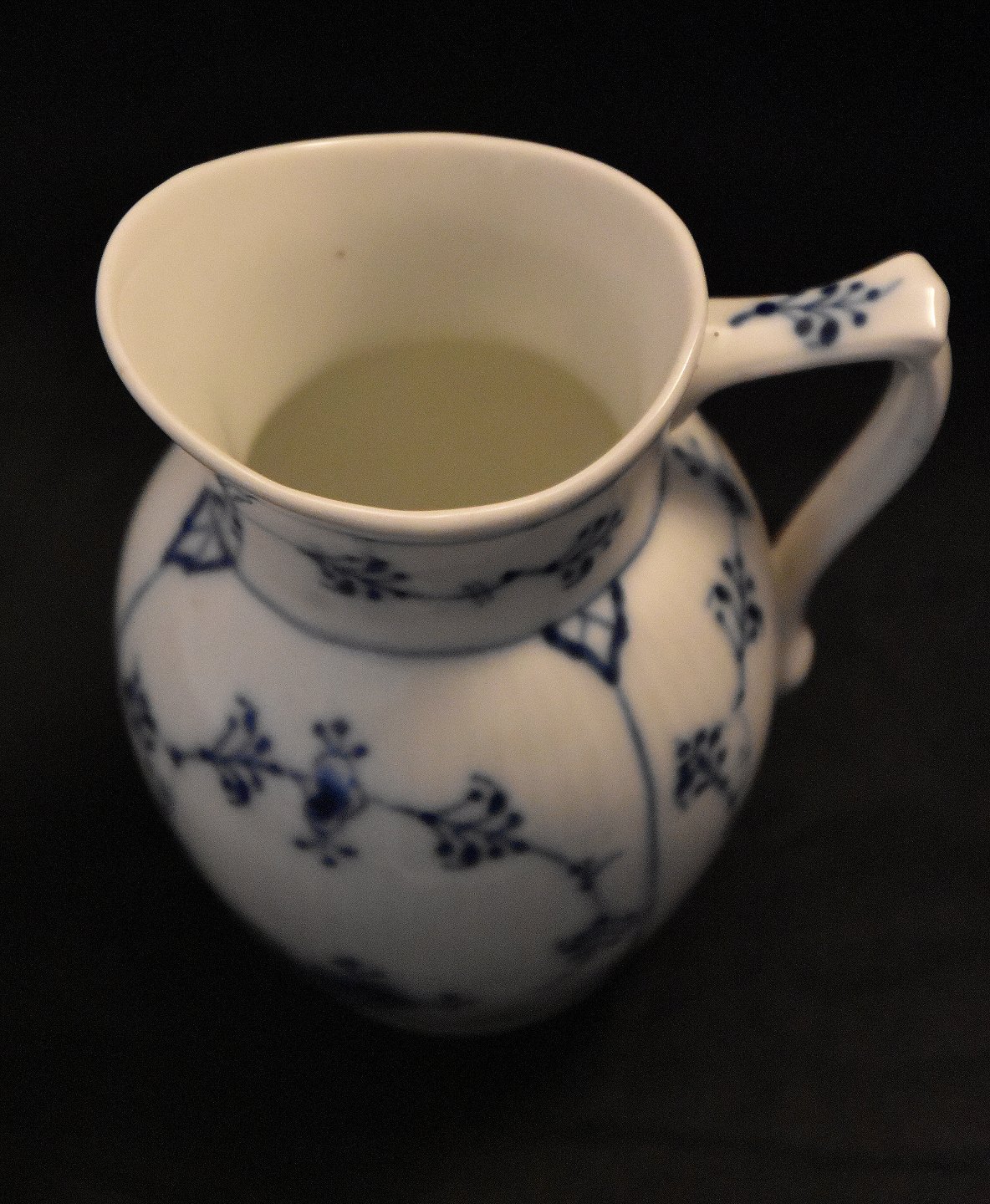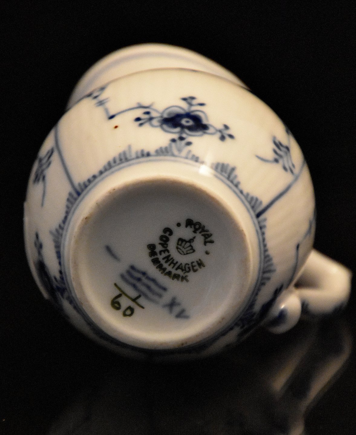 Royal Copenhagen flødekande 1/60. Den RC/KGL flødekande er riflet og musselmalet.
