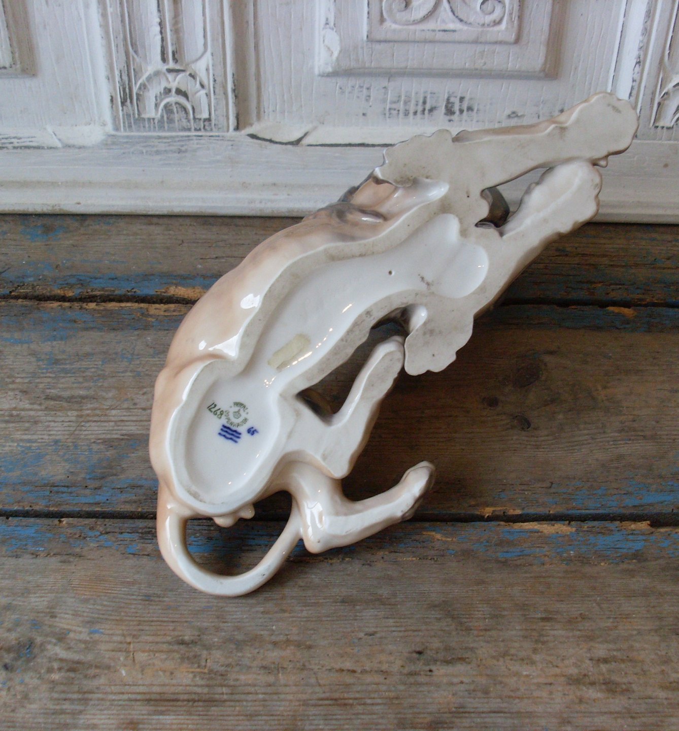 Fremstår dog med et mikroskopisk glasur afslag på bagsiden af manken.