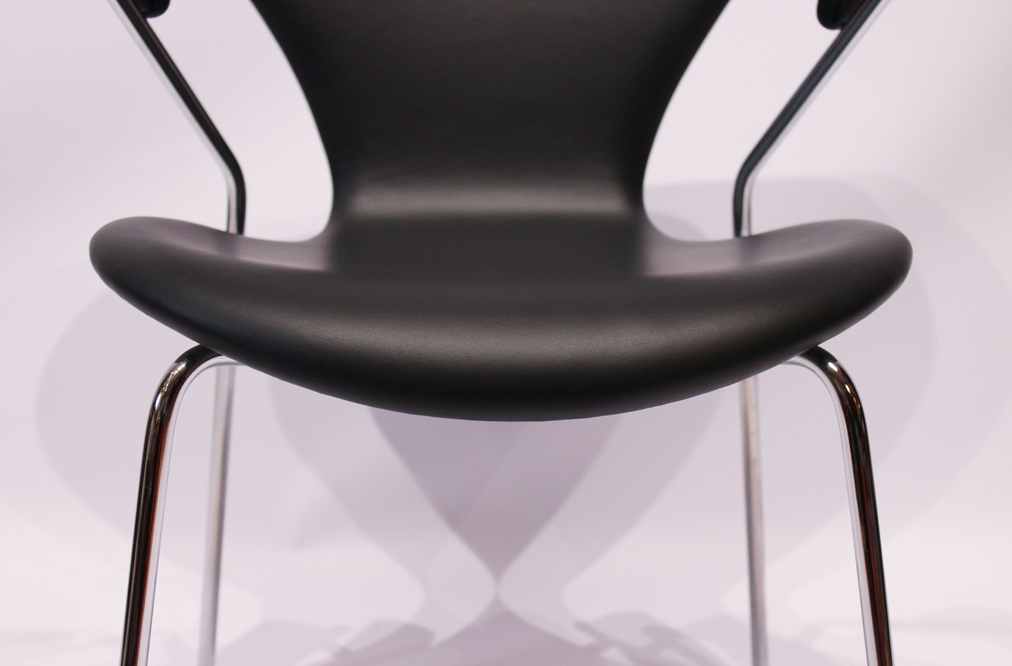Seven chair with Arms - Model 3207 - Black leather - Arne Jacobsen - Fritz Hansen
