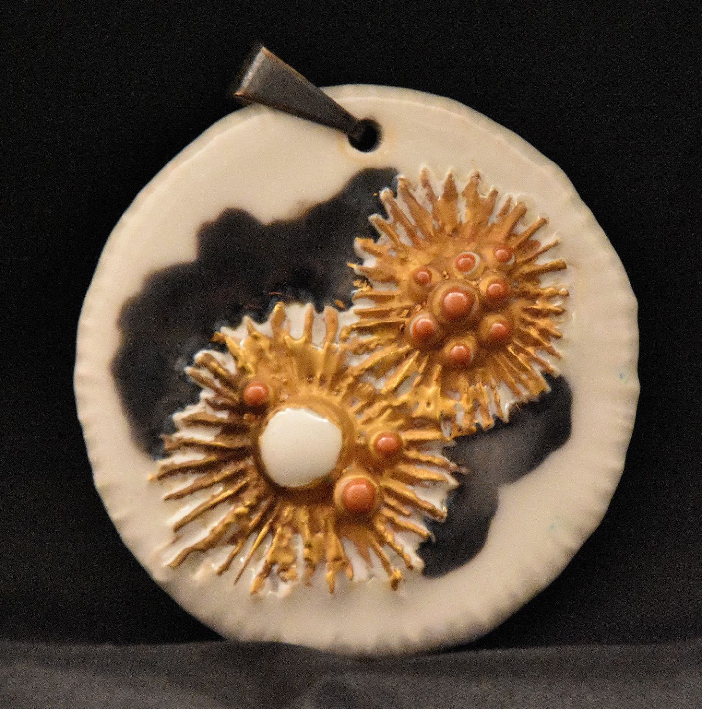 Royal Copenhagen Porcelæns vedhæng dekoreret med sort og guld