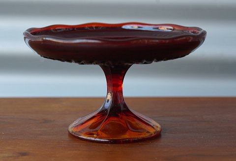 Rød og gul glas opsats fra Fyens Glasværk. Opsatsens skål er rød og farverne fader ud til gul, så foden er gul.