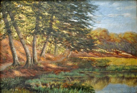 Møller, O. C. (19. årh.) Skov parti. Olie på lærred. Signeret.