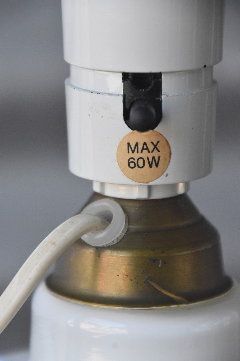 Holmegaard bordlampe i hvid opalglas og med messing fatning