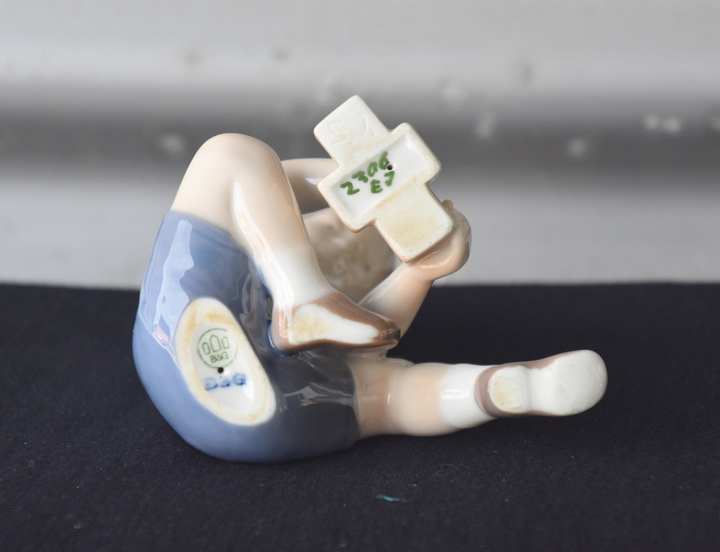 Figur i porcelæn med motiv af dreng som leger med klodser. Nr. 2306