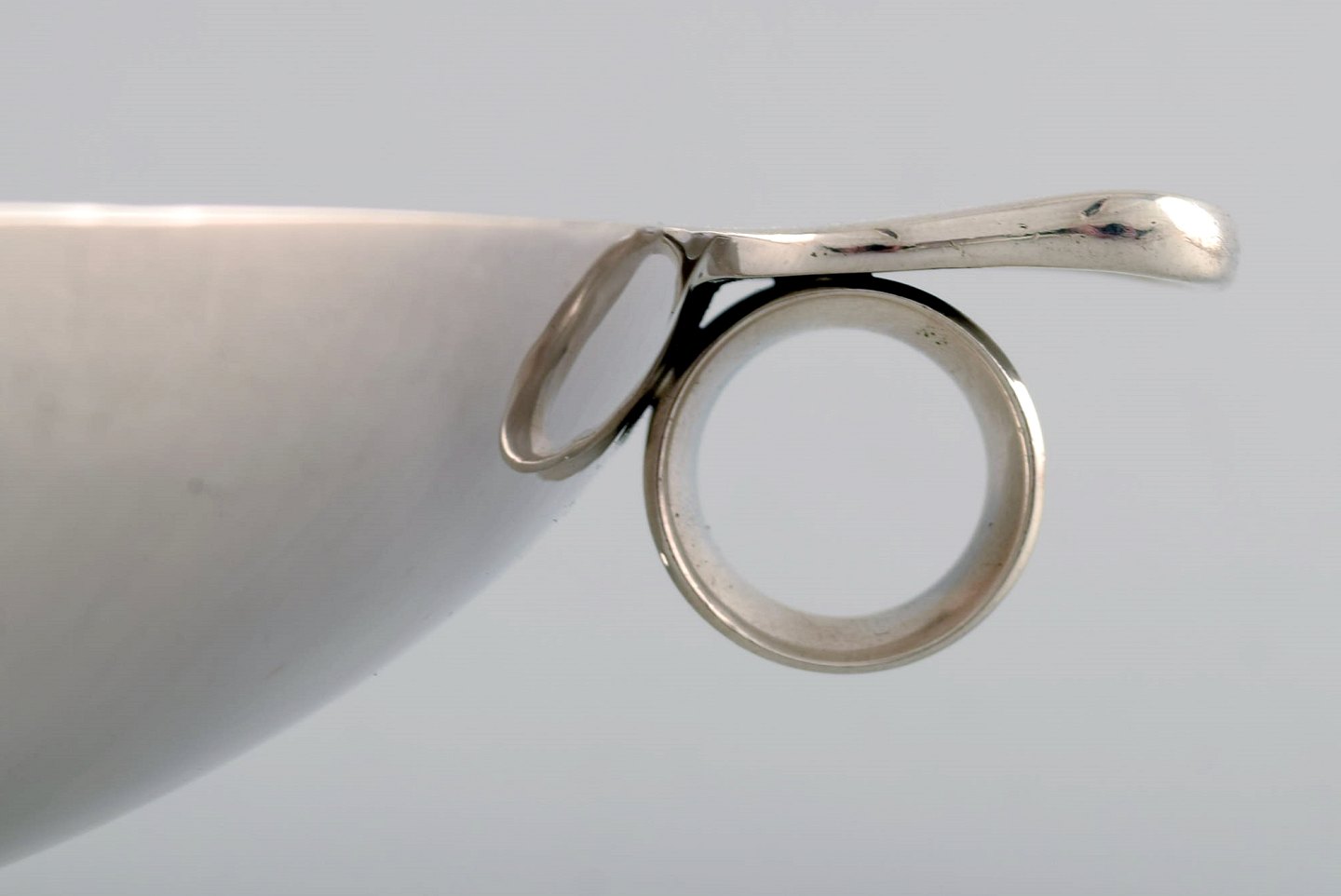 GUSTAV PEDERSEN for Georg jensen. Stor art deco skål med hanke på fod i sterlingsølv.