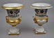 Pair of French empire vases, o. 1800. With handles and square foot. Decorated with romantic scenes. Hand painted and gilded. Height: 25.5 cm.