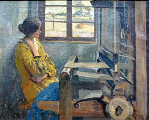 Sørensen, Eiler (1869 - 1953) Denmark: A young woman by a loom