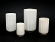 Text available in Danish: Lyngby Porcelænsfabrik, Vaser produceret i perioden 1936 til 1969. Slank hvid vase med riller. Alle i flot stand.