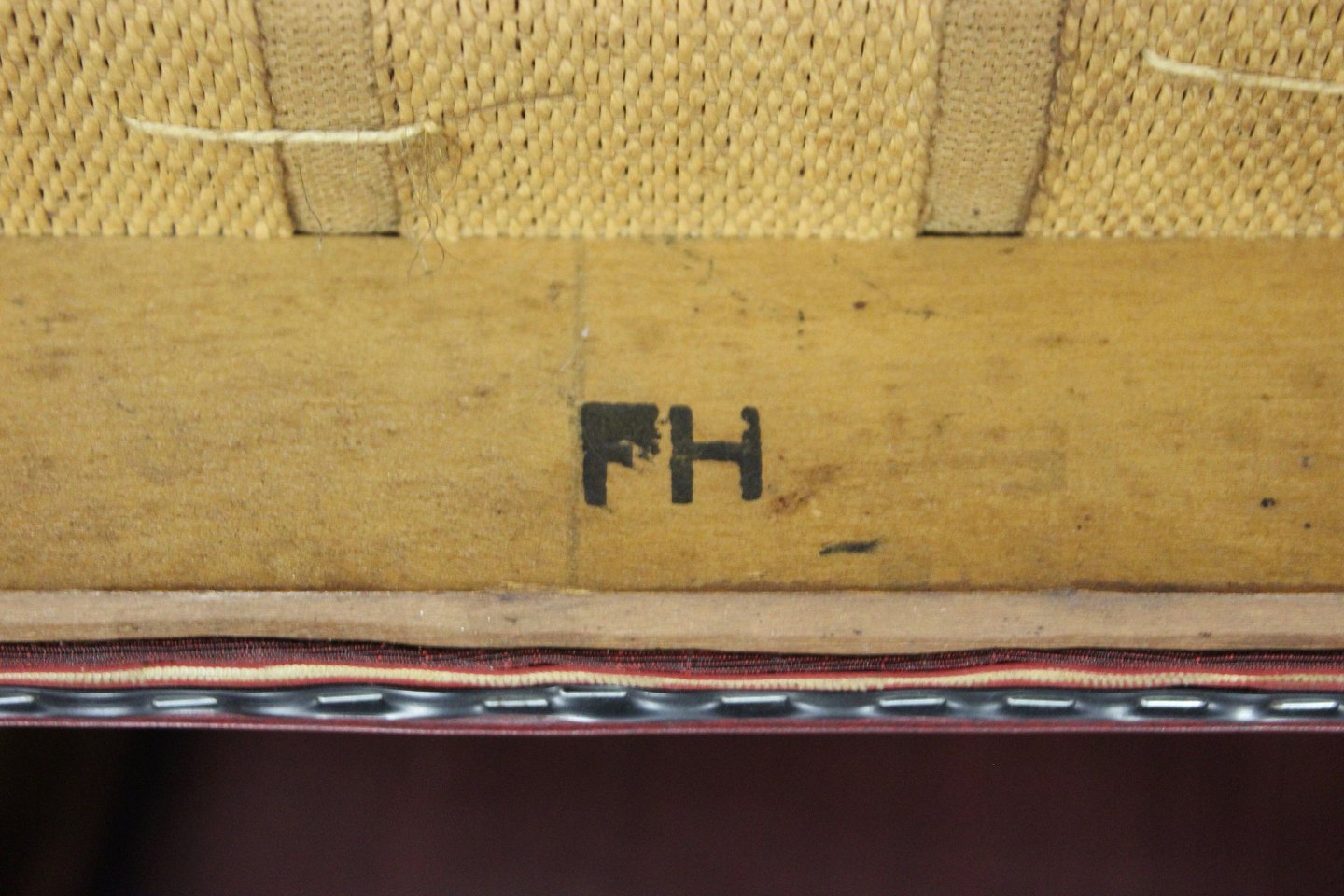 These armchairs exude timeless elegance and sophistication, with their mahogany wood construction and red fabric upholstery. They were designed by the iconic Danish furniture designer Fritz Hansen in the 1930s and are a true masterpiece of Danish furniture design.