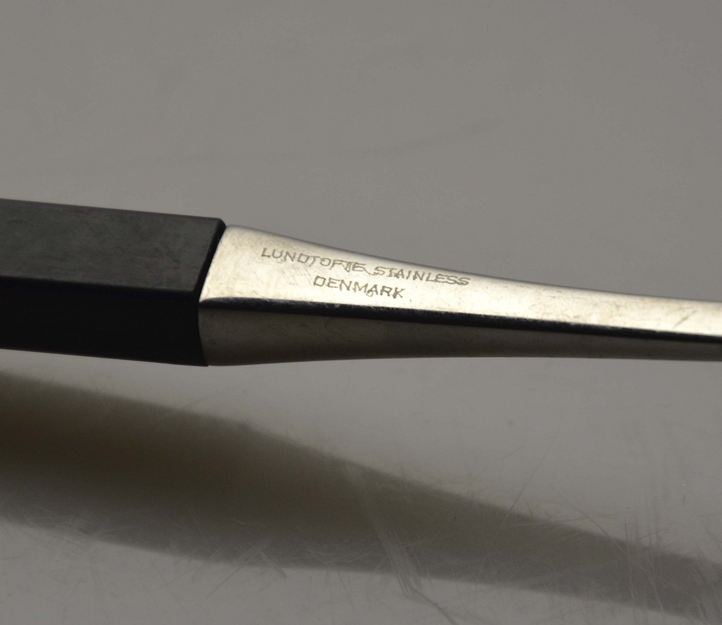 Eckhoff bestik fra Lundtofte stål model Opus, lavet med sort plast materiale og stål.
