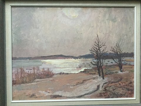 Maleri af Folmer Bonnén - Kystparti, vinter.